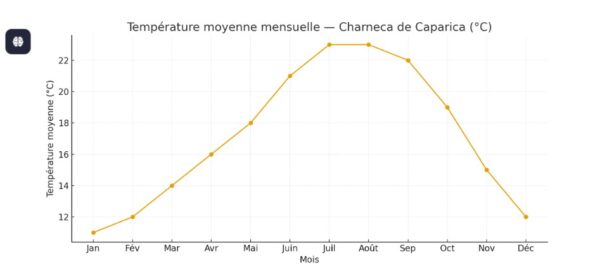 Graphique des températures moyennes mensuelles à Charneca de Caparica.