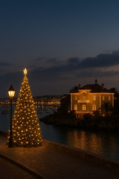 À seulement 30 minutes de Lisbonne, Cascais offre un Noël chic et détendu. Le bord de mer s’anime, les villas se parent de lumière, et les commerces haut de gamme restent ouverts pour une clientèle locale et internationale.
