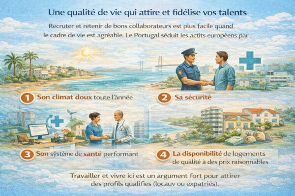 Recruter et retenir de bons collaborateurs est plus facile quand le cadre de vie est agréable. Le Portugal séduit les actifs européens par :